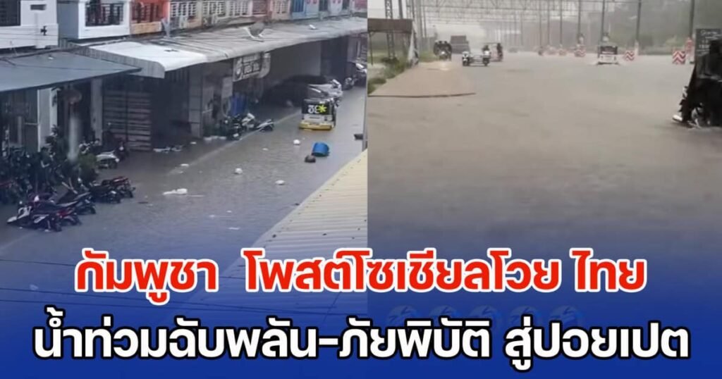ส่งผลให้ พื้นที่ฝั่งปอยเปต ประเทศกัมพูชา ก็ได้รับผลกระทบจากฝนที่ตกอย่างหนักเช่นกัน เกิดน้ำท่วมฉับพลันบนถนนฝั่งตรงข้ามกับประเทศไทย เส้นทางมายังบ่อนคาสิโนดัง ๆ หลายจุด โดยถนนในพื้นที่ดังกล่าวถูกน้ำท่วมสูงมากกว่า 50 ซม. บางจุดเลยหัวเข่า และไหลบ่าไปตามถนนซึ่งถือว่า หนักกว่าฝั่งประเทศไทย