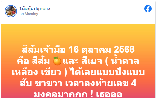 เดี๋ยวจะหาว่าไม่บอก! วันนี้วันดี สีเสื้อมงคล ใส่วันที่ 16 ตุลาคม 2568.!!