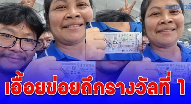 ยิ้มแก้มแตก สาวใหญ่ ถูกรางวัลที่ 1 รายแรกมาแล้ว.!!