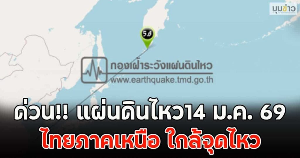 ด่วน!! แผ่นดินไหว14 ม.ค. 69 ไทยภาคเหนือ ใกล้จุดไหว