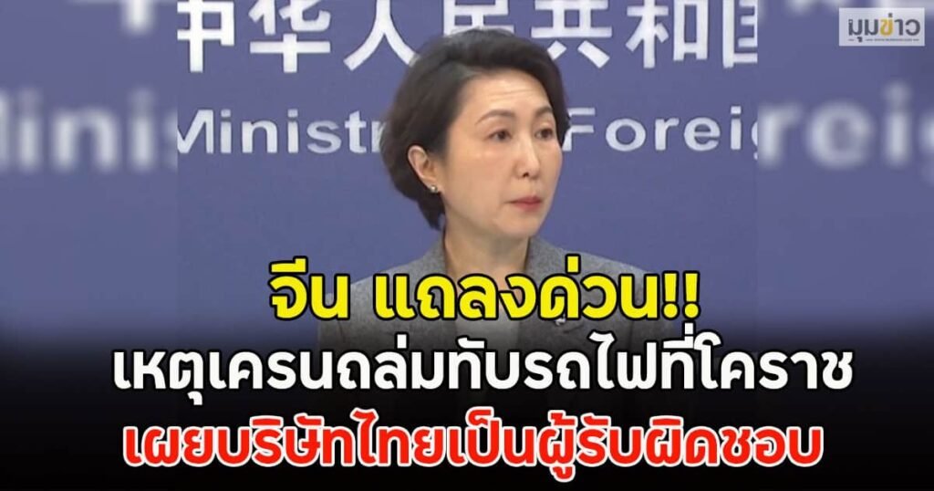 จีน แถลงด่วน!! เหตุเครนถล่มทับรถไฟที่โคราช เผยบริษัทไทยเป็นผู้รับผิดชอบ
